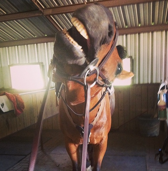 I got home from the barn at 10am, which was weird. What do normal people do for basically an entire weekend day? I still don’t really know, because I figured this was a prime opportunity to clean aforementioned gross disgusting stuff. All my tack and my tall boots got a thorough cleaning and conditioning, the result of which I swear is still one of the most rewarding feelings in the world. There’s nothing better than a shiny pretty saddle and nicely polished boots.