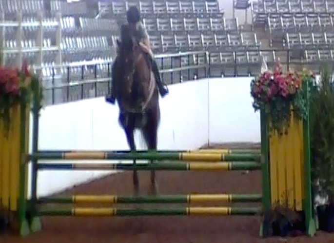We went to a few more shows, moving up to the low Adult jumpers. Most times he was pretty solid, although we were riding more to get us both miles, not to win, so there weren’t a lot of ribbons. One particularly hilarious (and frustrating) show was Waco in January 2012. I don’t know what it was about that ring, but he was terrified of the jump crew (in the middle of the long side on one side of the ring) and the giant judge’s tower of doom (in the middle of the long side on the other side of the ring). So, basically all of our rounds looked like this: