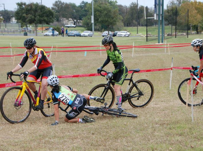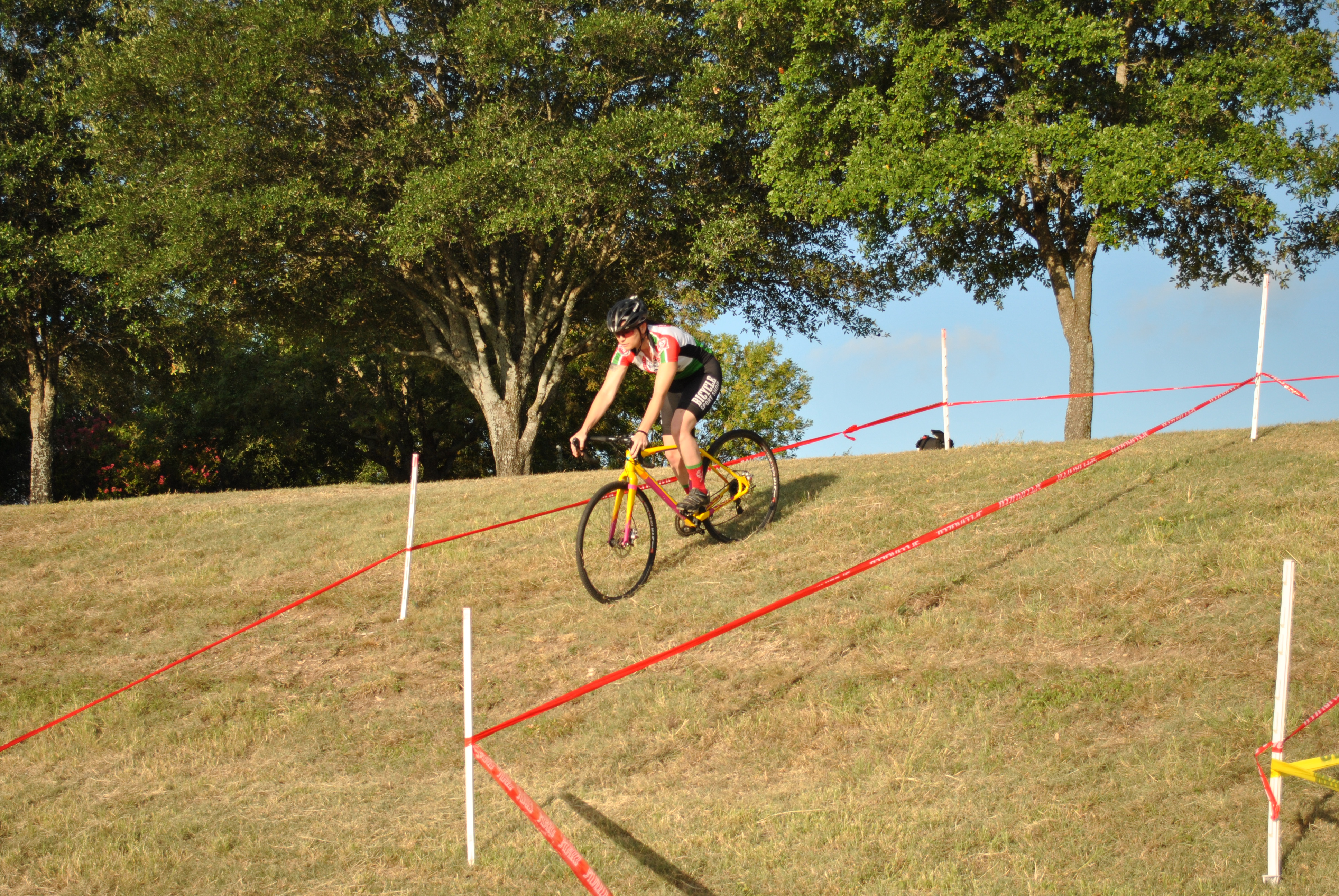 Basically imagine a bike sport that a bunch of 10 year olds would invent if you got them drunk and let them loose in a park. You ride mostly over grass but sometimes dirt, gravel and pavement. There’s switchback turns, steep up and down hills, off-camber, sand pits, barriers that you have to jump off your bike and run over (I’m not kidding), sometimes it’s super muddy, sometimes there’s stairs, etc. But everyone is just so laid back and having such a ridiculously good time, it makes it crazy fun. The crowd is encouraged to do this thing called hand-ups… basically they stand beside the course with “treats” (usually a Twizzler or a cup of beer) and offer it to you as you whiz by. Ever tried to chug a beer in the middle of a race? And you’ve never lived until you’ve taken a particularly sandy Twizzler from a random kid (preferably without using your hands) and tried to eat it while pedaling your butt off. Races are only about 30-45 minutes usually, and you’re basically at your max heart rate the entire time. You fall, you bleed, you get muddy, you freeze your balls off, you can’t breathe, you want to die, but it’s the most fun you can have on a bike, period.