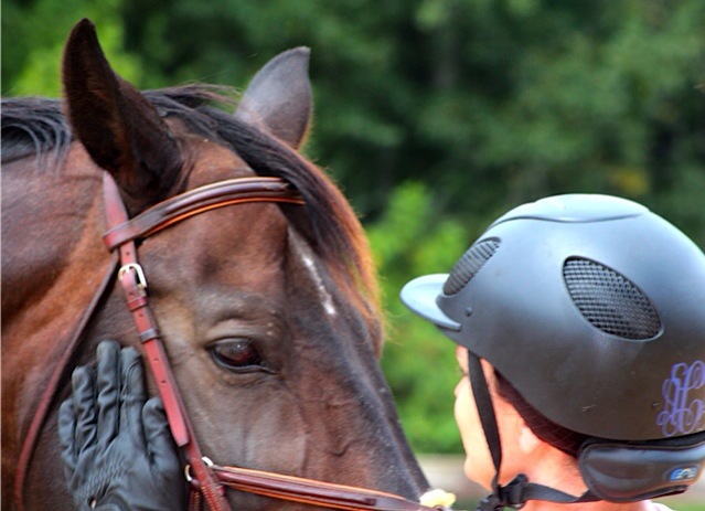 He started out a teeny bit looky and kinda jazzed up (he jigged a few steps when we first walked out to the field… he never jigs) but as soon as he jumped a few he relaxed and was just a rockstar. There were a couple things that he checked in with me about “Are you sure we should jump this?” but I just closed my leg and he motored right over. He even jumped a log out of the water. Pretty darn thrilled with him and he seemed to have a blast. By the end he felt very confident and more bold – exactly the effect I was hoping for.