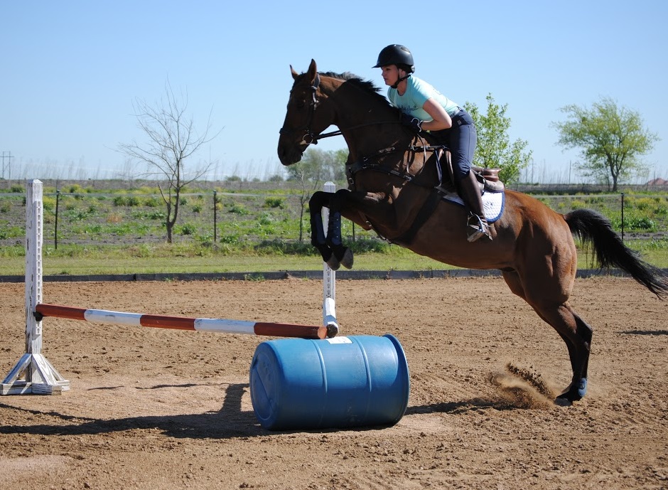 After that I decided I should probably like… I dunno… sit up and steer or something? He jumped it well, although it took several tries to really get him jumping straight across it. Once he did it was old news and he was no longer impressed.
