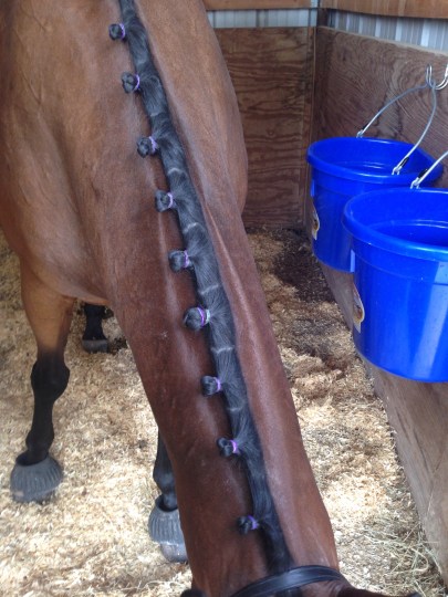 After settling in we tacked up the horses and took them out to stretch their legs. The facility has a trail running all the way around the perimeter of the property, so we had a nice little light trail ride and then put them away.