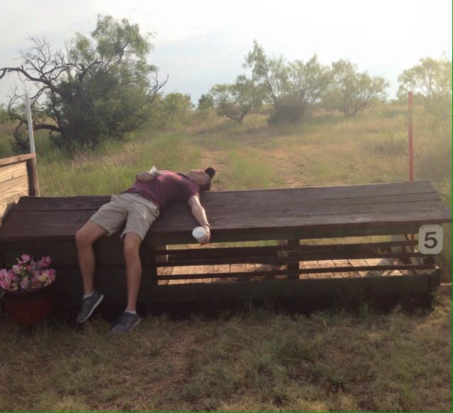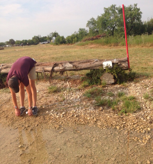 Having one of only a handful of clear stadium rounds on Saturday re-invigorated my spirits, and I woke up on Sunday feeling ready to rock and roll. The XC course was touted as being soft and a good move-up course, but it wasn’t quite as simple as I was expecting, which I’m ok with. There were a few max height fences and tough questions, including a huge down bank (cue some nail biting on my part) and two combinations. Overall though it looked very do-able and inviting. The course walk pics are from very early Saturday morning, so prepare for some grumpy morning Bobby.