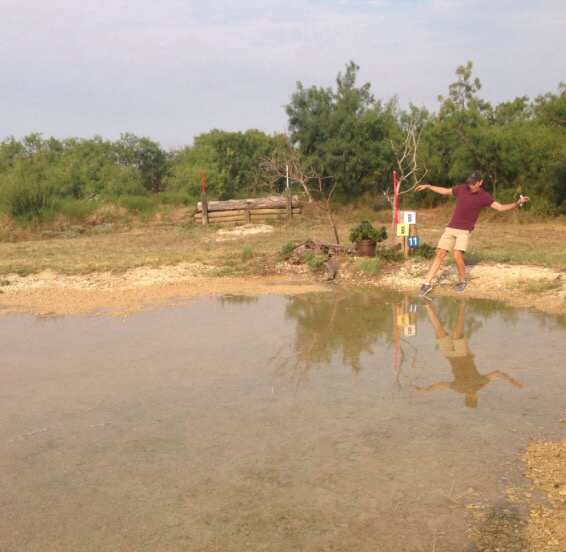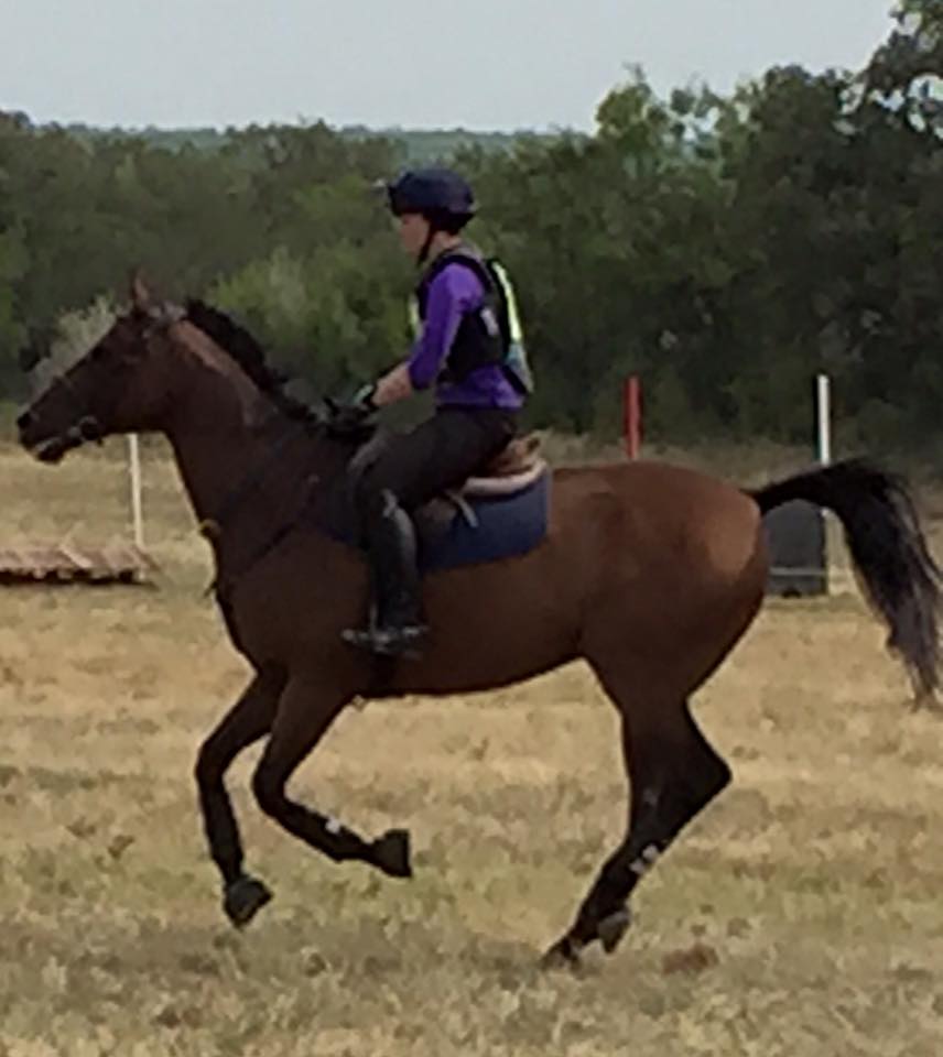 More weaving around more gross scrubby brush and then we popped out into the big front field where we had to take a hard right turn with a very short approach to 10abc, the water complex. The approach to this made it kind dirty, IMO, you would reeeeaaally have to get them back and get them turned and going forward again pretty quickly. But the A element was a nice inviting brush fence