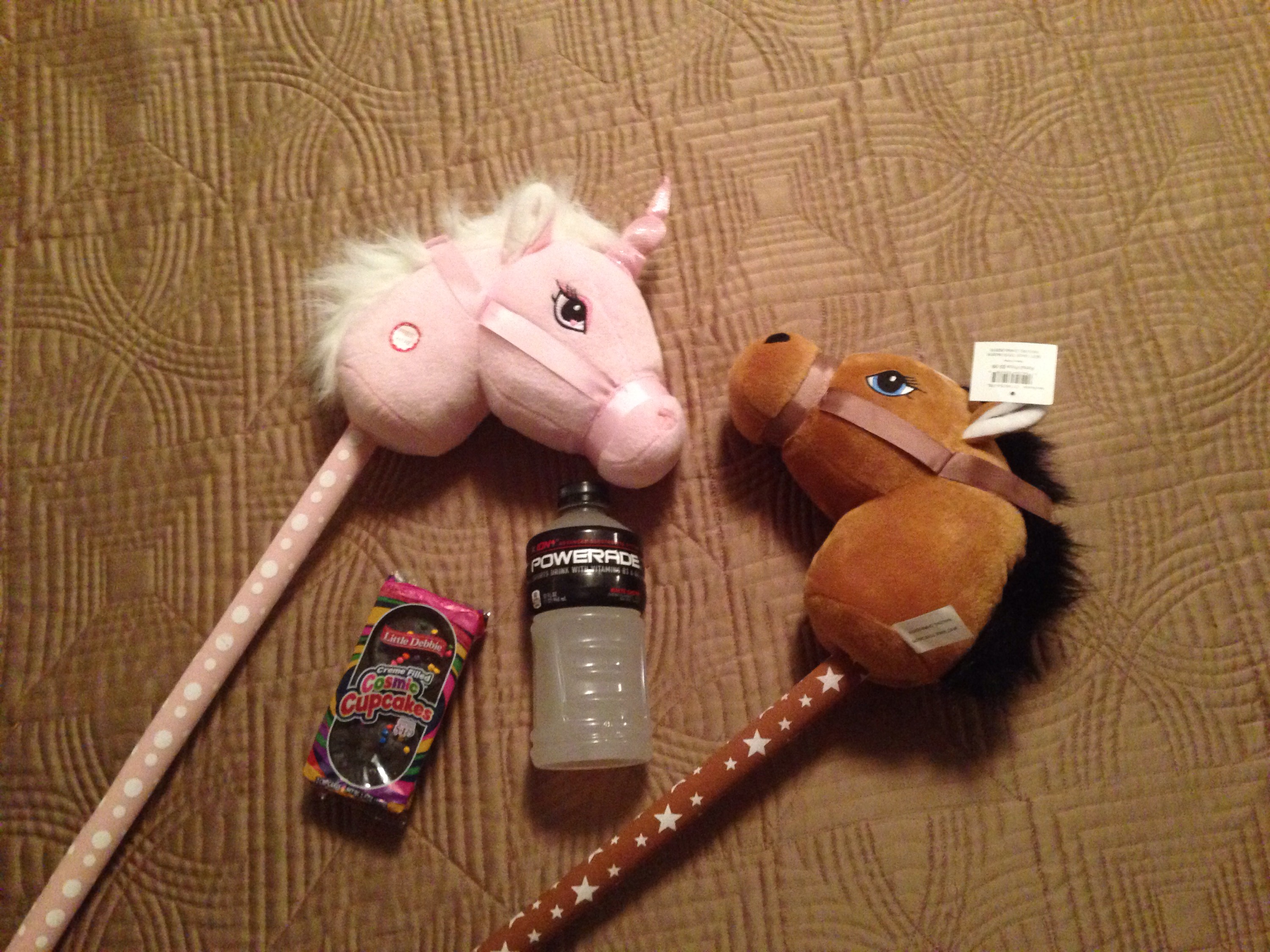 1. A) poptarts are yum so not surprised (and my horse will EAT anything) B) Bobby may be a coward but he is fun so shut up C) LOL I read that as Lowes and was all bummed my lowes doesnt carry Unicorn on a stick HA but then went back and saw it was a truck stop. I want a photo of the purple one though! D) NO photos?? UGH that sounds horrible. Did the horse just refuse and slid under it. ICK glad all were okay E) Of course you guys are awesome. But Bobby needs to let someone else get the glory one day.