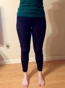 Stain resistant (scale of 1-5): 4 Do they stretch out with wear: No Do they dry quickly: Fairly quickly Are they thick or thin: somewhere between average and a little bit thick # of wears (approx): A ton. I’ve had them for years. Is there any fading? Just starting to think about fading. Is there any pilling? At the back of the knee. How well do they hide thigh cheese: Fairly well. These are a bit too small on me so they’re less flattering than they could be. Any fit issues: Other than me being a bit too fat for them in general, no.