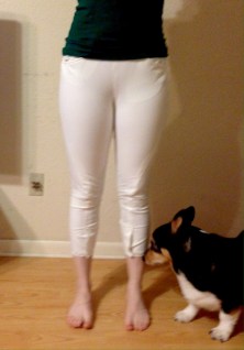 Stain resistant (on a scale of 1 – 5, with 1 being least resistant and 5 being most resistant): 2 Do they stretch out with wear: Yes Are they stiff or soft out of the wash: Soft Do they dry quickly: Fairly Are they thick or thin: Average # of wears (approx): maybe 10? Usually at shows. Is there any fading? No Is there any pilling? No How well do they hide thigh cheese: Decently. Any fit issues: These are fine. I don’t love side zip, and I prefer how these fit after they’ve stretched a bit (which they do). For some reason they tend to catch on my belly button ring a lot when I’m sitting. They’ve been my back-up pair for shows, but since I bought more these will get culled because I HATE VELCRO.