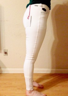 Do they stretch out with wear: No Are they stiff or soft out of the wash: A bit stiff Do they dry quickly: Fairly Are they thick or thin: Thicker # of wears (approx): Around 15 Is there any fading? No Is there any pilling? No How well do they hide thigh cheese: Surprisingly well Any fit issues: These are a teeny bit long on me too, but I like these breeches and wish I’d bought more than one pair. They’re starting to look a bit off-white after a year of showing.