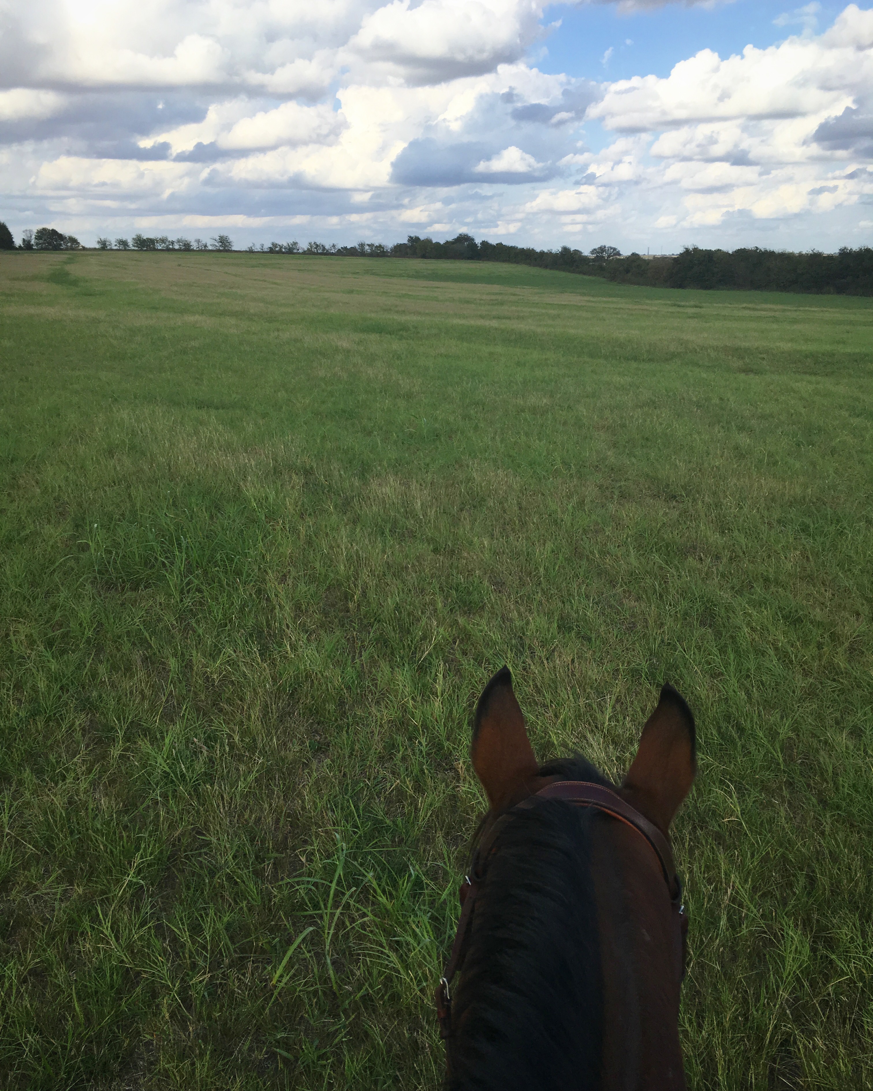 I got him all settled in on Tuesday, and then on Wednesday I hopped on. We pretty much just walked the perimeter of the giant hay field since the ground was still a little bit hard from how dry it’s been lately, but I just could not resist taking this giant green space for a spin. Plus Henry’s shoes were barely hanging on, so we couldn’t do much more than walk anyway.