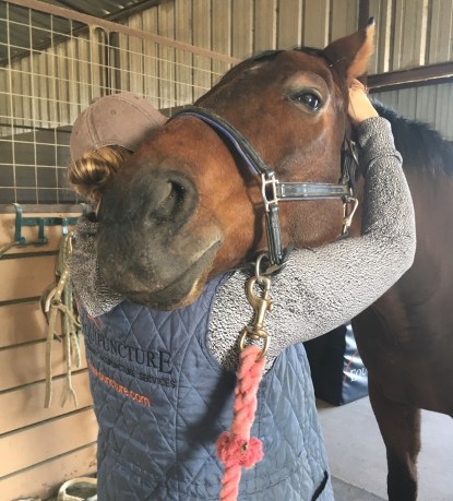 The practitioner we used was a new one for us – she’s a vet that specializes in acupuncture. I’ve not had any personal experience with acupuncture before at all, either human or equine, so I had no real opinion about it either way beforehand, just a healthy dose of skepticism. I was not convinced that a few specifically placed tiny needles could really make much difference, but ultimately I figured “hey, why the hell not?”… worst case scenario I burn some money. And if there’s one thing that I’ve gotten really good at after 17 years of owning horses, it’s this: