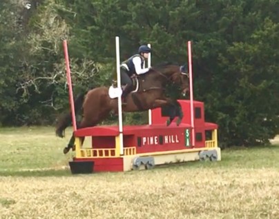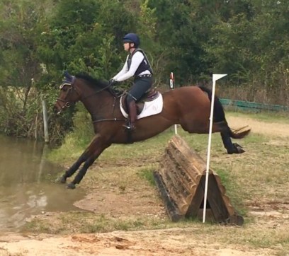 We wrapped up our day with the water. We jumped the Training tiki hut and ditch in the woods (which you can’t see in the video) then came out to the water combo, which is a little jump, two strides downhill to another little jump landing in the water, then through the water and out over the little chevron. Henny is always bold at water, no problem there either. We called it quits after that.