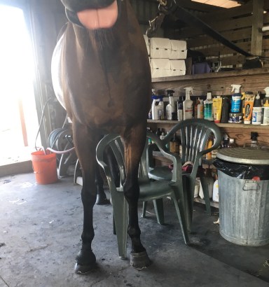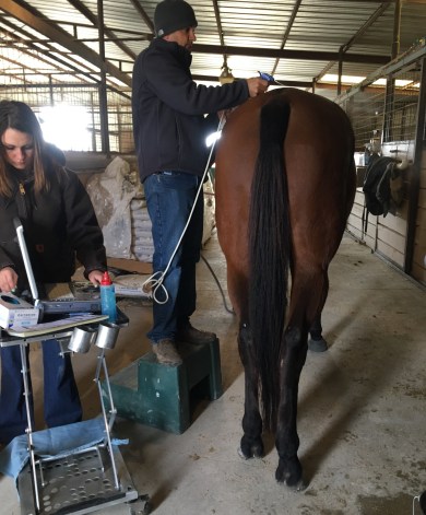 Henry was basically non-responsive to the hock flexions, which we were both really happy about. The vet was happy with the fetlocks, stifles, and hocks, but agreed that it looked like something intermittently just wasn’t quite right higher up. The SI palpation showed what is pretty typical for Henry – very reactive over the right SI. And considering Henry has had a pretty light last two weeks, the vet was probably seeing a best case scenario. He recommended we try injecting the SI, which is what I’ve been wanting to do for quite a while, so I was 110% on board with that. Henry really has been ticking almost every single box for a horse with SI issues.