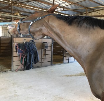 But then he hurt himself and was off for a while, and then the first couple months of bringing him back under saddle were mostly just going forward and getting him loosened up again. Then I was more focused on getting ready for the show. I kinda let the whole “good-downward-transitions-and-halting/standing-when-told” thing go by the wayside. No surprise, our downward transitions and final halt at the show were gross. It kinda looked a lot like this: