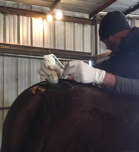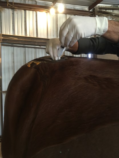 I apologize for the following pictures if you’re squeamish but damn, you don’t realize how far down in there the SI is until you see this. The vet got everything lined up, then guided the needle into the correct place.