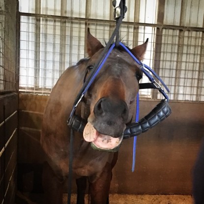It was ironic timing when Henry colicked last Thursday (he’s been totally fine since then, btw), because he already had an appointment on Friday morning to get his teeth done and his SI looked at. The vet that came out specializes in equine dentistry, but also does regular veterinary work as well. I’ve been searching for someone good to take a look at Henry’s SI (which I think is the source of many of our dressage issues) and this one came highly recommended by several people. When I heard he was coming out to do teeth, I called and tacked an exam onto Henry’s appointment.