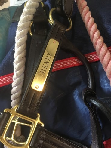 Currently Kentucky Bridleworks offers two options: black with chrome hardware or brown with brass hardware, both of which come with an engraved plate. I was really tempted to go with the black and spice things up a bit, but in the end was persuaded that black looks a little too dressagey, and let’s be honest no eventer wants that (just kidding, DQ’s. Kind of.). It arrived quickly, was beautifully packaged (great for gifting!), and pre-oiled, so it was ready to go right out of the box. I opted for the horse size for Henry, since he’s normally between cob and horse. I probably could have gone either way, but since he doesn’t wear a halter in turnout I prefer a looser fit. They seem to run pretty true to size.