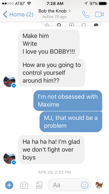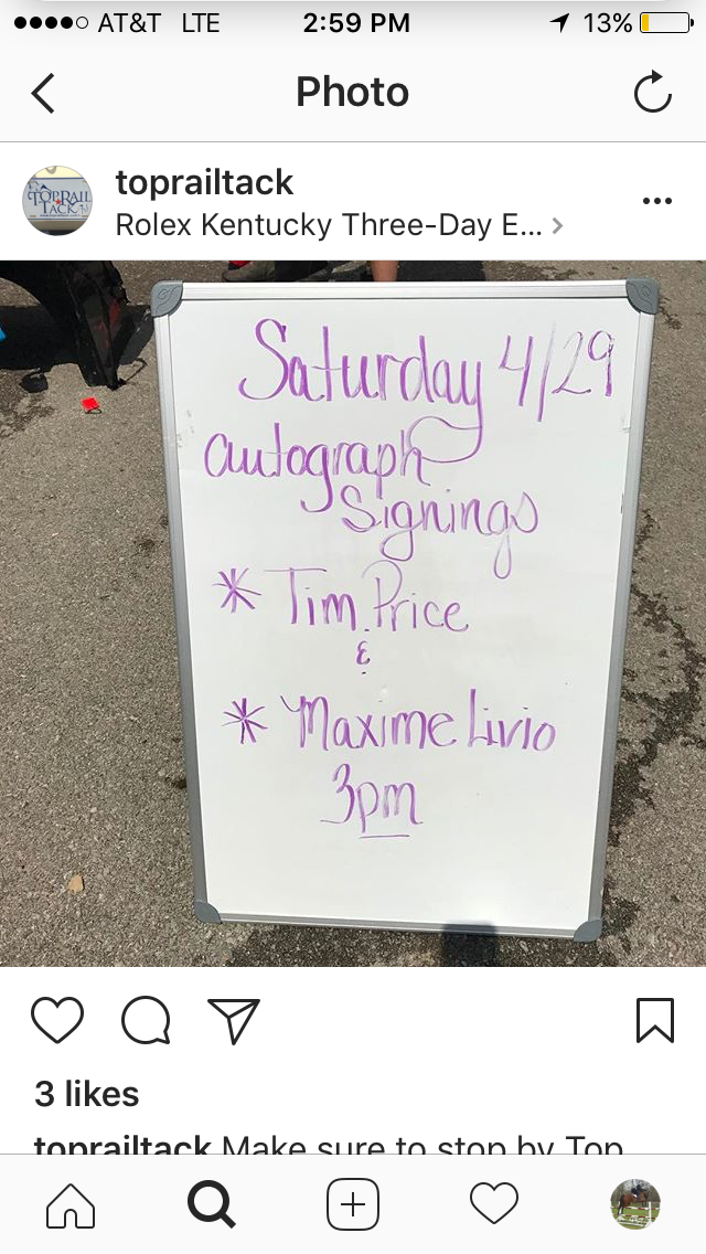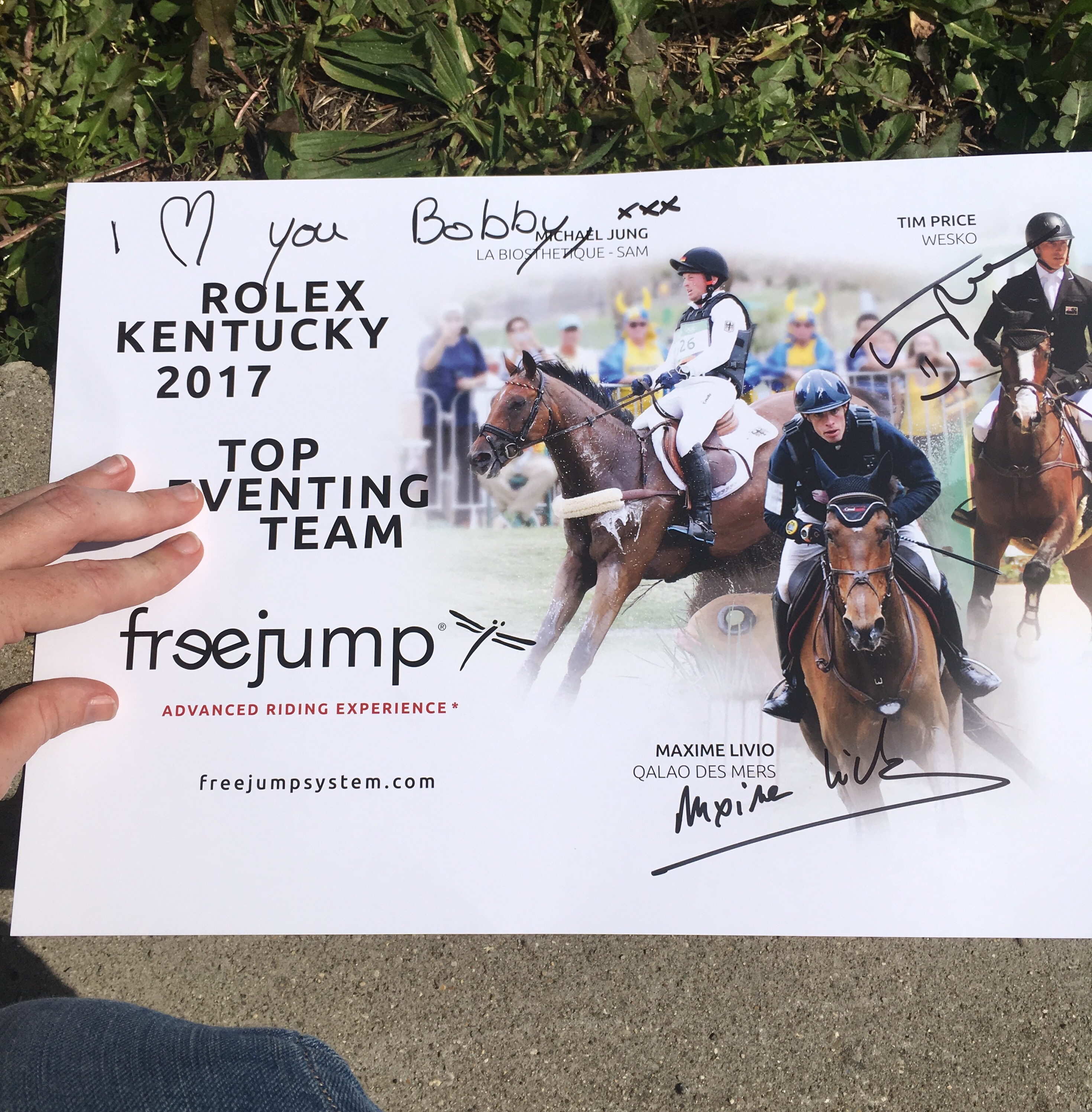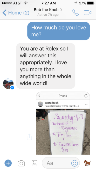 I really hope that Tim Price went back to the barns and told everyone about how Maxime wrote I LOVE YOU for a 40yo man named Bobby. I’m sure after the gaggle of women falling all over themselves for Maxime all weekend, surely this was a nice change of pace? Either way, now he knows he has a stalker and that his friends are equally as creepy.