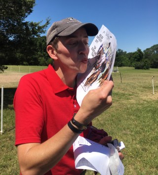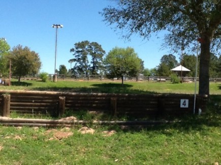 After I was done with dressage (praise be) I left Henry at the trailer and set off to walk the course. They were doing jumper rounds in the stadium ring so I didn’t wait around for a break to walk the first three fences of my course, which were all stadium jumps. Jump 4 was another stadium fence set in the fence line, over which you jumped OUT of the arena, landing on a downhill slope. I figured Henry would be a little confused about jumping out of the arena, so counting that plus the downhill landing I figured I’d just stay back and keep my leg on. That’s usually the right answer.