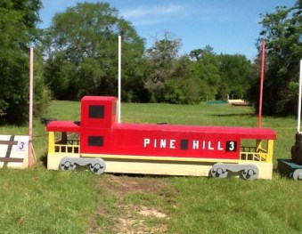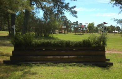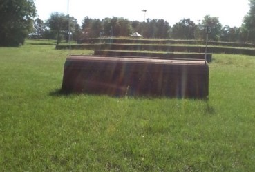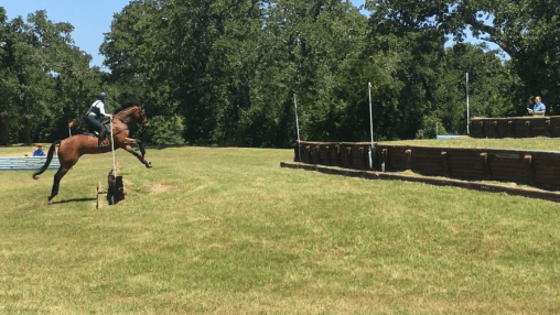 After the down bank it was a bending line right to a small bench, then you kept rolling out into the big field with a little bit of a longer stretch to 7ab, a vertical to oxer in and out of stadium fences. Then you hung a right and jumped the red train car