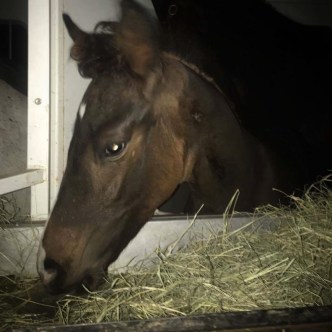 Since Sadie checked in foal last week, Michelle went and picked them up on Friday. Of course, it’s already pretty hot here and Presto’s medication makes him prone to overheating, so she wanted to trailer them at night when it was coolest. I swear that woman lives on an unhealthy amount of Red Bull, but I love her for it and I’m sure Presto appreciated it too. She always puts the horses needs ahead of her own. Although I did hear that he was not so happy with having alcohol sponged on him when she stopped for gas… he says sorry Auntie Michelle.