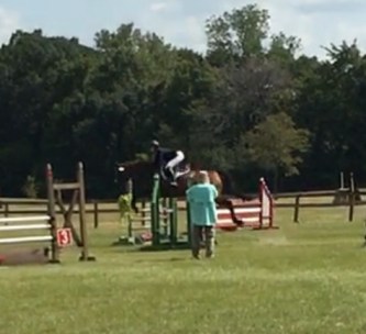 I get to the barn Thursday afternoon, ready to FINALLY fit a ride in. I went out and set up a few jumps in the field, since it had been, oh ya know, a month since we last jumped. I won’t even tell you how long it had been since we last jumped a course (coughtheJunehorsetrialcough). I set up our little warmup boxes, a 3’3″ vertical, and a 3’6″ oxer. We had a nice stretchy trot warmup, then went for a quick little canter, popped over the jumps a few times, and called it done. He actually felt super, especially considering how long it had been.
