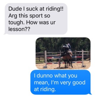 But the horse could also jump, and he loved the job. Granted, getting him stopped at the end of the course usually required running him into something, but he would jump anything from anywhere and never touch a rail. This barn rat was smitten. The best part? Nobody else really wanted to ride him. I had him all to myself.