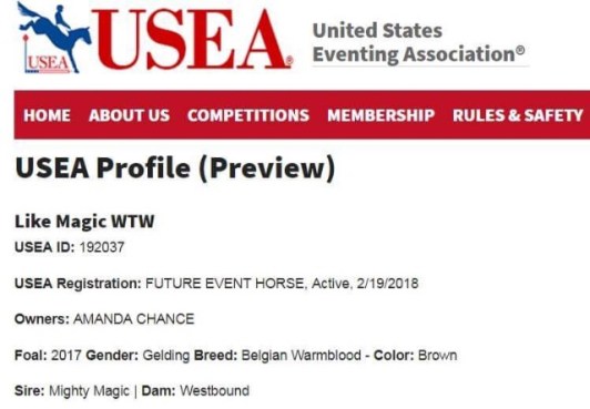 Yep, Presto is an official, card-carrying, USEA-registered horse. So legit now, man.