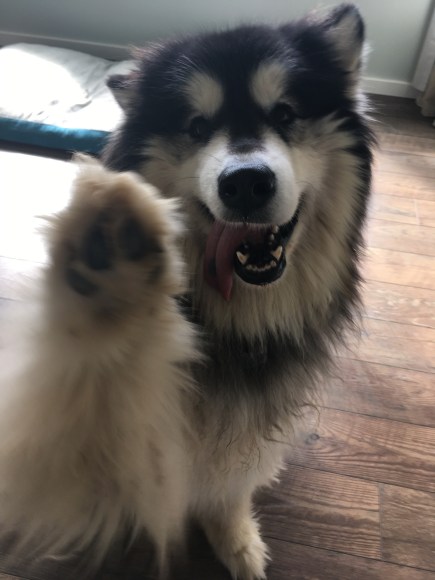 Since Henry seems to be such a good influence on Presto, I took them both out to the washrack together. I hosed Henry off while Presto watched, and then hosed Presto. He wasn’t thrilled, but he didn’t protest.