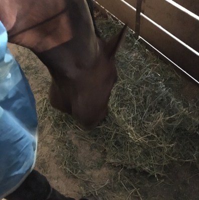 We have a new weekend guy, and I’m a helicopter horse mom, so I just don’t quite trust him yet. I got there right as he was feeding, so I tossed Henry a flake of alfalfa first, and then gave him his breakfast 15 minutes later. I wanted to wait around until he was totally done eating, to make sure he still looked good, so I set about organizing my trunk.