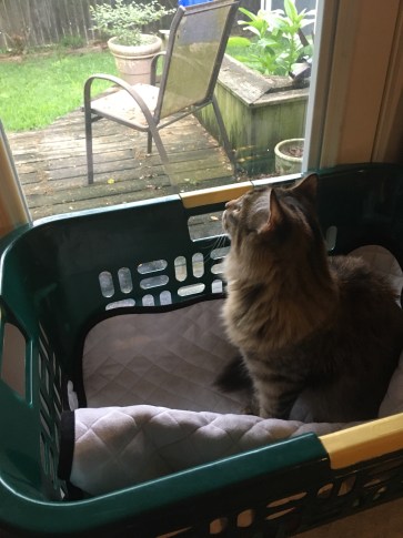 After deciding that Henry was fine and happy and warm, I tucked tail and ran home. I will admit, it wasn’t THAT cold, but when it was 75 the day before and gonna be 70 again the next day, why even bother with a day where the “feels like” temp is 37? I’ll pass, thanks. Instead I went home and basically read a book all day, with a short break to build the cat a fort. Ok, it was just a clothes basket with a saddle pad in it, sitting on top of a Yeti cooler. Whatever, she loved it.