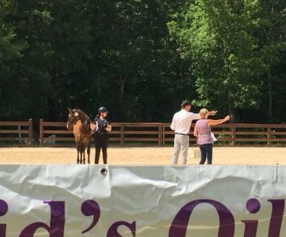 Everyone else showed up around 9:30, and I got on Henry for a quick run-through of the dressage test. Or tried, I guess. He was tense and pissy and just kind of a monster in general. A sassmonster. He felt like that awesome combination of wild but behind the leg. Everyone’s favorite thing to ride. Yay.