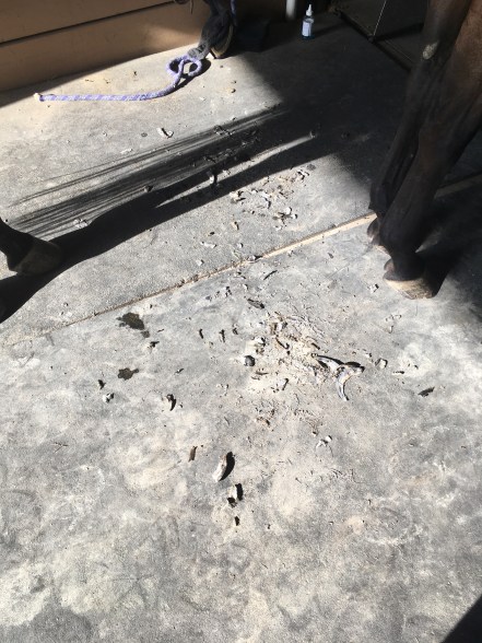 When I moved to my current barn almost 2 years ago, I was at a farrier crossroads anyway. The one I’d been using was just getting way too busy to come out for my (at that time) one horse anymore. I hauled Henry off property to him a couple times before it became clear that I was going to have to try something else.