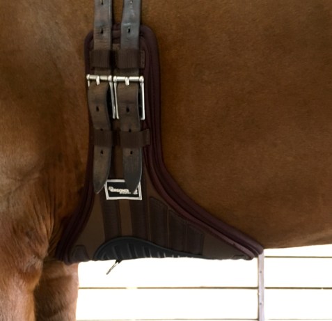 My only tiny complaint is that I wish the impact protection sections went about a half inch further back, since I have a large butt + long femur and therefore a loooong saddle. It fits my 18″ extra forward Devoucoux, but just barely.