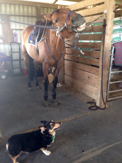 He’s definitely a total weirdo that was NOT socialized properly, but we love him all the same. He’s been a good dog overall, and he especially excelled in his very part time gig as a mobile tack shop greeter.