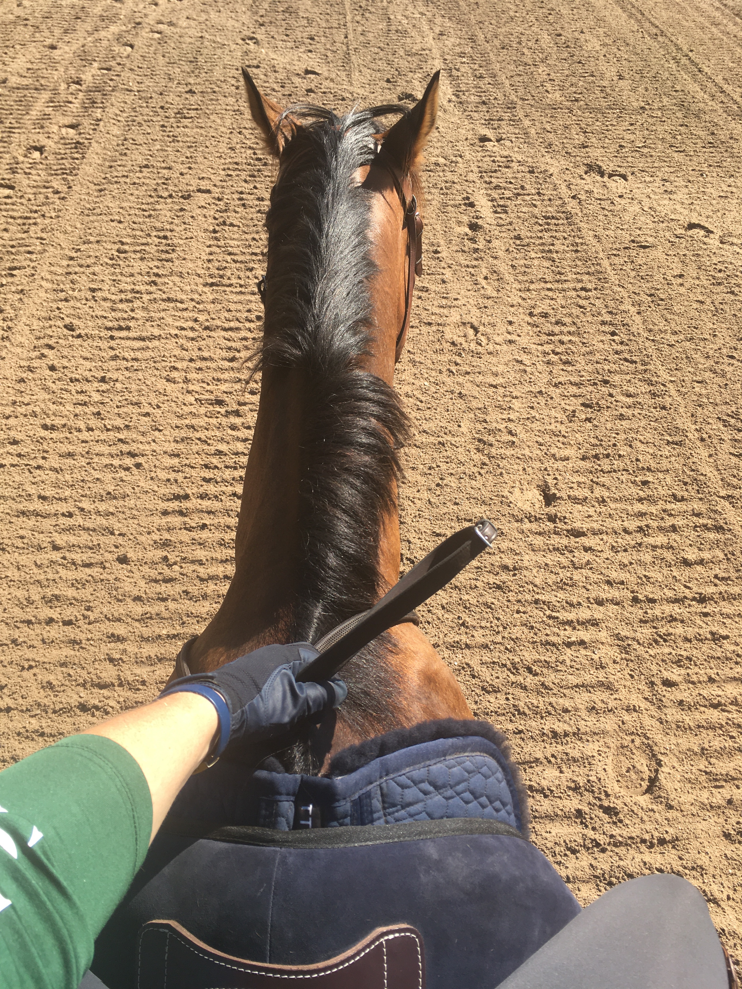 He’s at that stage right now where he retains things so much that you feel like you’re building something tangible out of Lego’s. There’s a real satisfaction to getting on and seeing that despite going a week or two between rides, it’s as if the last ride was just yesterday. On his last real ride we started doing figure 8’s, changes of direction across the diagonal, and even big 3 loop serpentines at the trot. He was a little confused by the changes of direction at first, thinking he needed to walk through them, but this time he never even tried, just kept trotting right on through like “ok, now we go dis way”. He’s also getting a little bit straighter on his trips down the long side. I wouldn’t say he’s anywhere near actually being straight, but… it’s less drunken. The trot rhythm is starting to get a bit more consistent, too. It’s far from perfect but there are little baby improvements with every ride and I’m quite pleased with his progress with only this many rides spread over 2 months time.