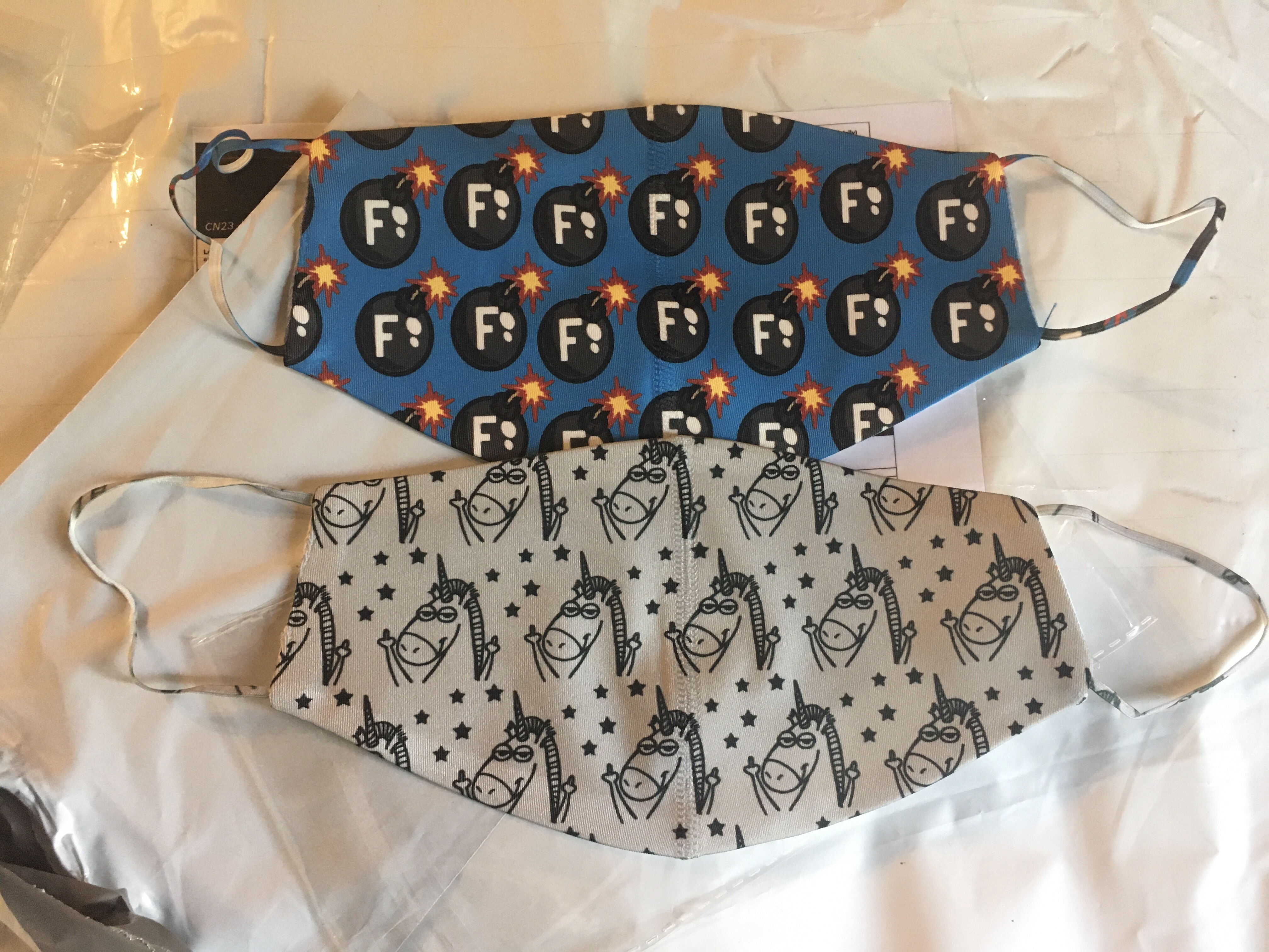 I’d been looking for some nice lightweight masks so I have extras, and these from Dreamers and Schemers definitely fit the bill. They’re really lightweight and comfy, so much so that these have now become my primary masks and my other one has been delegated to the extra-one-I-keep-in-the-car. Somebody in Lowe’s on Saturday noticed the F-bomb mask and chuckled, saying “accurate”, so… the sentiment is shared right now I think.