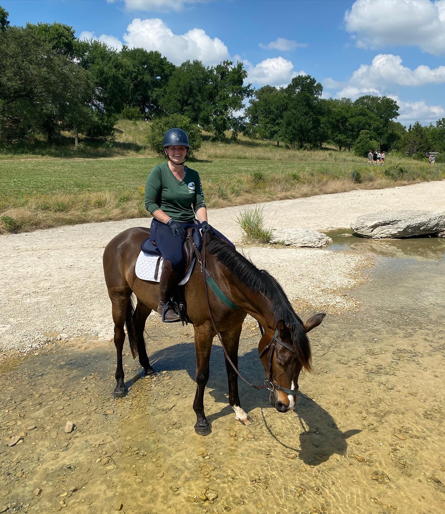 Our main objective was to ride down to the river, and on our way we got a nice variety of things thrown at us, including hikers, dogs, a stream crossing, a low water crossing, and other horses. And hills… lots of little semi-steep but fairly short hills. That’s EXACTLY what I want, to help him learn how to manage his feet and his balance, so I just stayed out of his way and let him pick his way up and down. Dobby wasn’t too sure about the low water bridge (in his defense it was spooky AF), which made Presto a little unsure, but we gave them time to figure it out and they crossed within a couple minutes. At the stream Presto decided that the only clear solution was to LEAP over it (and just about face first into a tree) so we took our time there again, going back and forth and moving forward one step a time so he could calmly figure it out and cross it more confidently. I was glad that he did what I asked and got across, but I wanted him to not just blindly leap over it like a banshee. We had the luxury of time, so we spent a few minutes letting him figure out the question.
