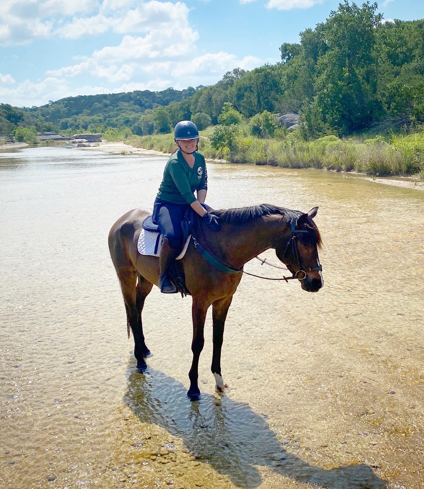 Where we were at was nice and shallow, so you could ride quite a ways down the river itself. We stood for a while and let the water run past their feet before we started moving, walking about 100 yards down the river. I have to be honest, the thing I was worried about most with this trip was Presto trying to lay down with me in the river. He got a drink, and he splashed a tiny bit, but mostly was just content to stand there and observe his surroundings.