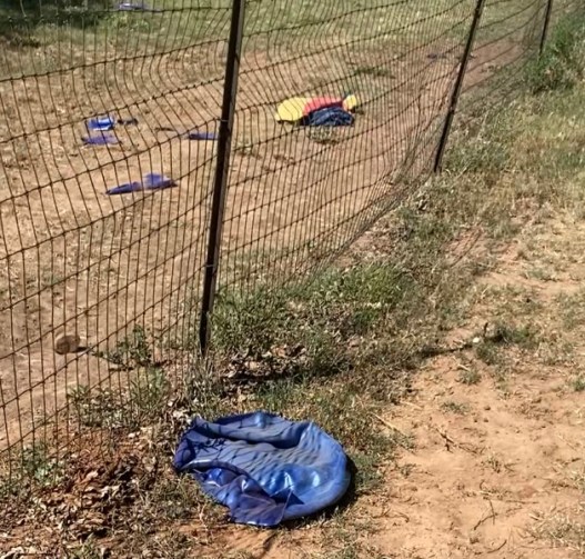 Those are the body parts of Ball #3. Ball #1 lasted months before he finally bit it hard enough to put a quarter sized hole in it. Ball #2 lasted about the same amount of time, and it just had a slow leak from being rolled through a cactus, nothing dramatic or violent. Ball #3 just debuted last weekend, and I came out on Saturday to find this particularly horrific crime scene. I dunno what the hell Presto did, but he did it very thoroughly. I can’t be sure of who actually popped the ball (I found a hole that looks suspiciously like the same teeth marks that led to the demise of Ball #1, though, which would point to Presto since JB tends to play with it more with his feet than his teeth) but there’s zero doubt at who mutilated the body. That’s TRADEMARK Presto. He ripped the cover apart, pulled the dead ball out, and then tore chunks off of it before depositing the largest piece over the fence into Henry’s field, as if dumping the body on Henry’s property would somehow shift the blame. It was in 9 pieces. Total massacre.