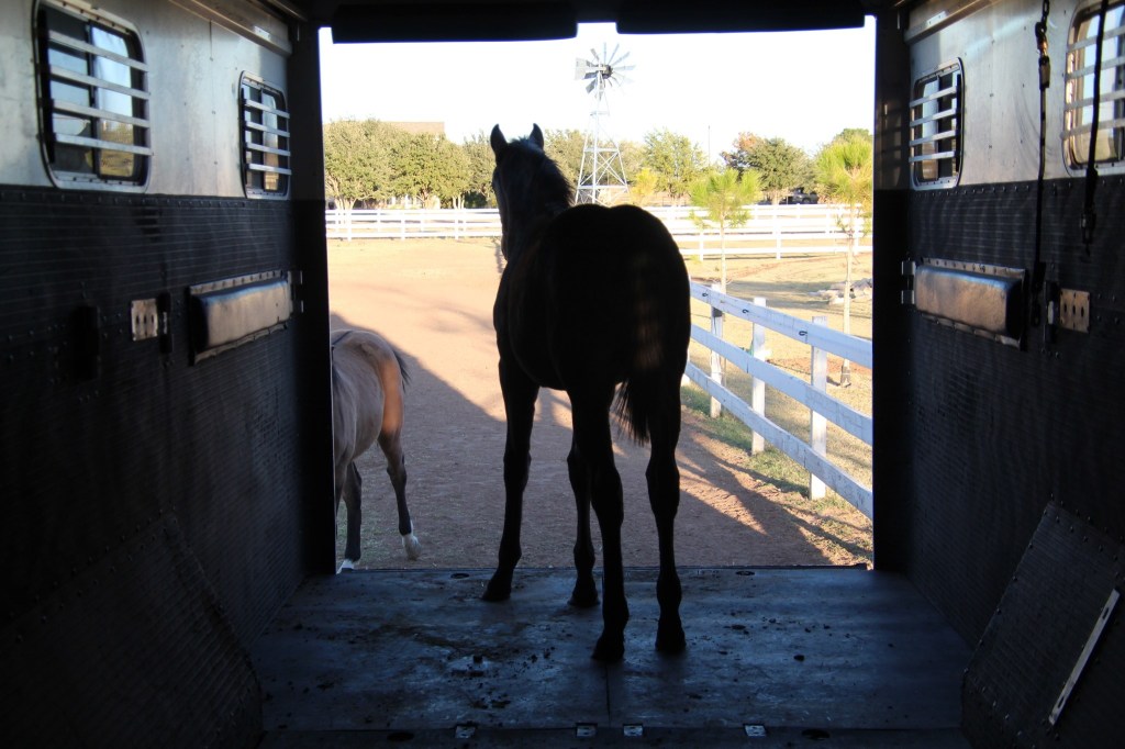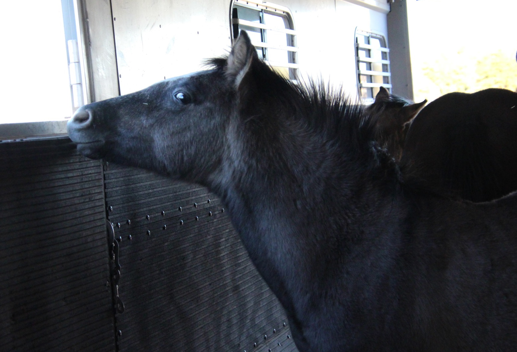 Yeah I know I know I know, we still need Glamour Shots sessions of Ollie and Ellie. No one has forgotten. It’s just that those require a lot more time + effort + people, which is hard to coordinate. They’ll happen at some point I promise. But we do still have a fun little photo session this week anyway! In preparation for their journey to Tennessee, the babies have been introduced to the trailer. Well, the trailer isn’t a totally new concept for some of them, like Ollie who had to go to the vet for his butt abscess. It’s always preferable to give them lots of time to check it out and get used to it first before they start the formal trailer-loading training or have to go for a ride anywhere, though, so the trailer was backed into their pasture, opened up, and left (with supervision of course) to let them check it out in their own time.
