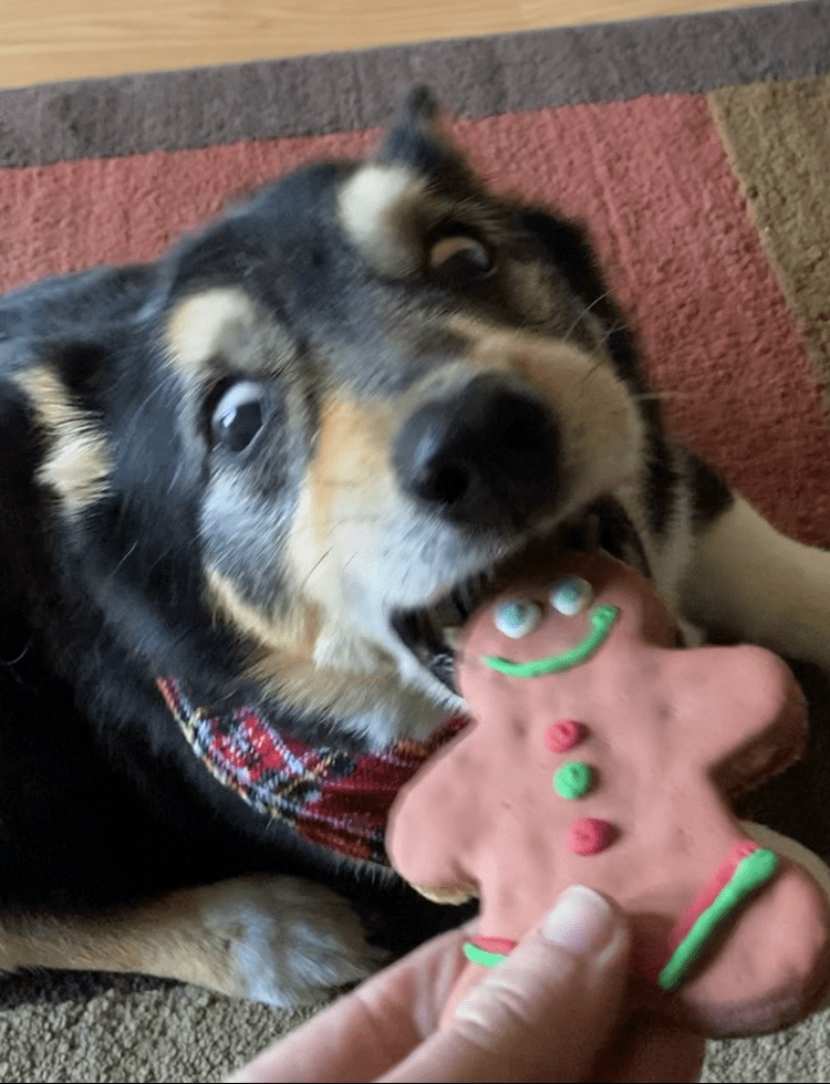 Food was kind of my unofficial Christmas theme this year I guess. I always get the dogs a special cookie, which they’re big fans of. I used to get them from a local small pet store that made them in house, but sadly they closed up shop in 2019. When I had the boys at the groomers a couple weeks ago they happened to have a good selection of cookies from another local vendor, so that worked out perfectly. They each got a gingerbread man. Quinn especially was pumped.