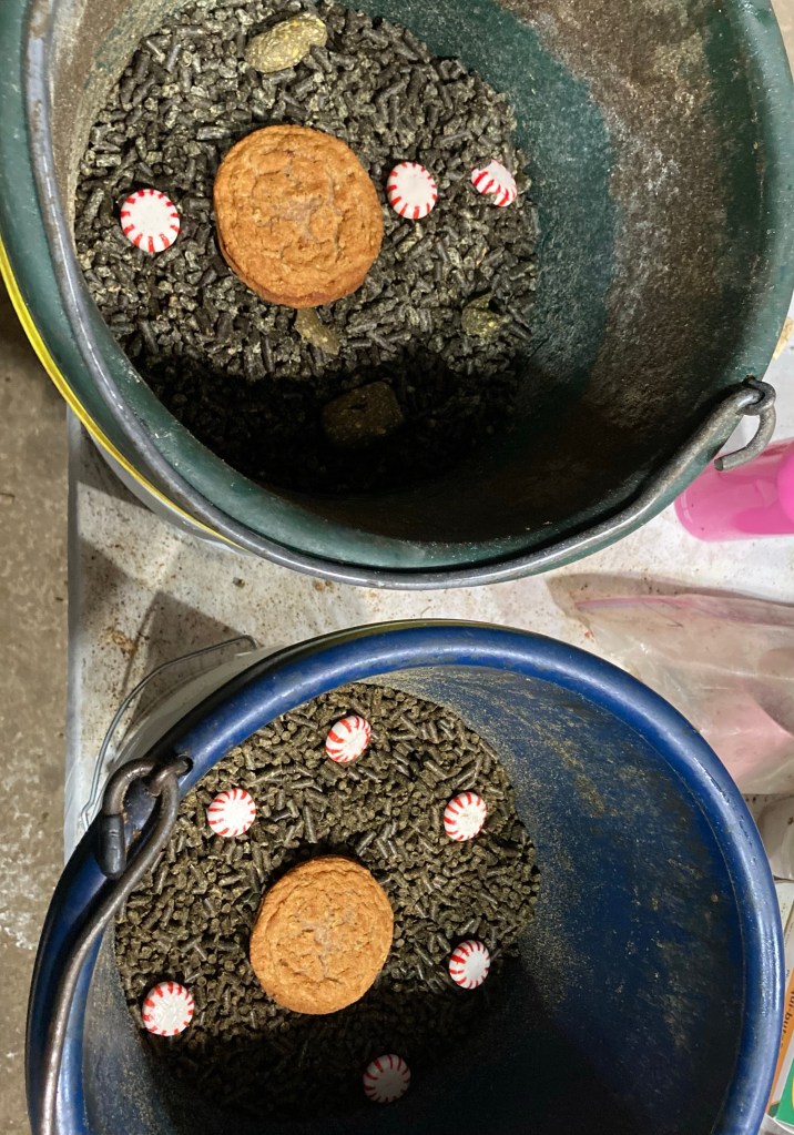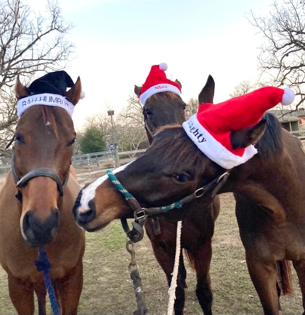 Admittedly Christmas isn’t really my holiday. I’m not religious, there’s none of that “fun in the snow” thing happening in Texas, and aside from Elf and It’s a Wonderful Life, I’m not really into Christmas movies or any of that stuff either. Halloween is my holiday. But I do like parts of Christmas, especially out here on the farm. Like making the horses a special Christmas breakfast.