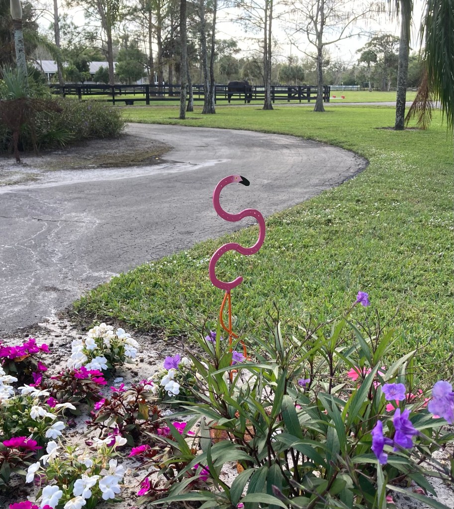 Not everyone got food though – I found an artisan on Etsy who does cool metalwork (largely using horseshoes) that had THE BEST horseshoe flamingo. The barnowners have a bit of a flamingo theme, and I figured what better for their Florida farm than a horseshoe flamingo?