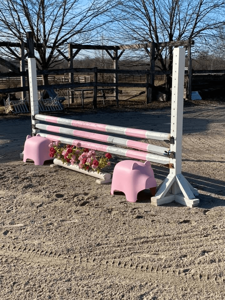 Yesterday Emily was telling me about these little pig stools that her trainer had found to use as jump filler and OMG y’all I had to have them. They’re PERFECT, and naturally I immediately spiraled into a very deep internet rabbit hole looking for something similar that was giraffes or monkeys or unicorns. I came up blank. But if anyone sees some economical little (like 18-24″?) things like this that I could use to add some pizazz to jumps, send them my way. I can’t wait to get the pigs. I’ve never put much fill on my jumps at home because shows that actually had fill were usually the only places Henry gave enough of a peek at the fences to jump clear and I didn’t want to take away that peek. For him keeping the jumps at home more boring was my tactic. Presto needs to start seeing interesting stuff now though so that when we do get to shows with fill, he isn’t taken by surprise.