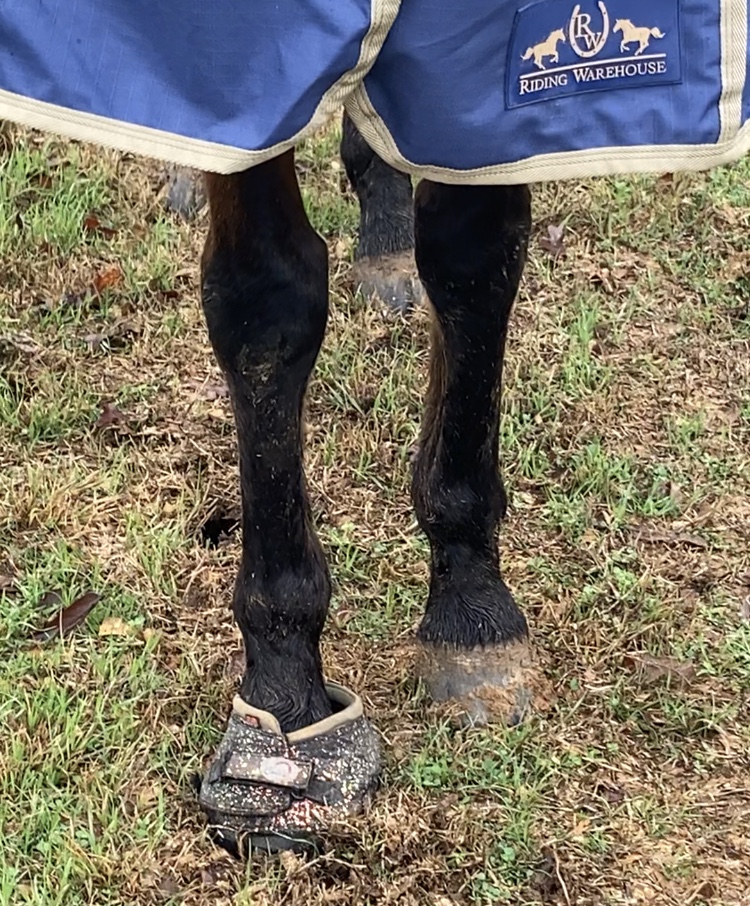 Really it started on the 30th. It rained for a solid 24 hours, and while we definitely needed it, it did mean that everything was too wet to ride for a couple days. Presto was absolutely climbing the walls from being stuck inside for a day, and when I turned them back out he was BANANAS. Henry made the mistake of trying to keep up with him which lasted about 5 minutes before Henry wrenched a shoe off and flung it into the next county. One of the front ones, of course. Luckily I have a deep collection of boots, so I texted the farrier (Happy New Year…. my horse lost a shoe…) and slapped a boot on it. On Saturday when the ring was dry enough I did hop on him for a few minutes with the boot, mostly just to stretch him out a bit. I thought about riding Presto on Saturday too, but given that he’d spent all morning galloping and bucking and spinning and squealing and leaping I thought maybe he needed another day to get all of his sillies out, and planned on riding them both on Sunday instead.