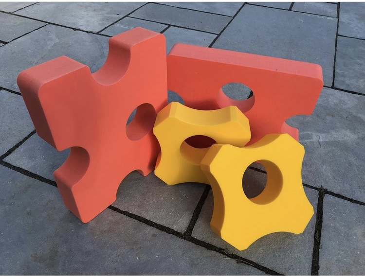 We actually use cinder blocks to make small cavaletties and oxers. They suck weight wise, but it’s an easy shape/size to replicate with a lighter material. Or you can always use cinder blocks in the mean time and hope you don’t slip a disk trying to carry them . . .