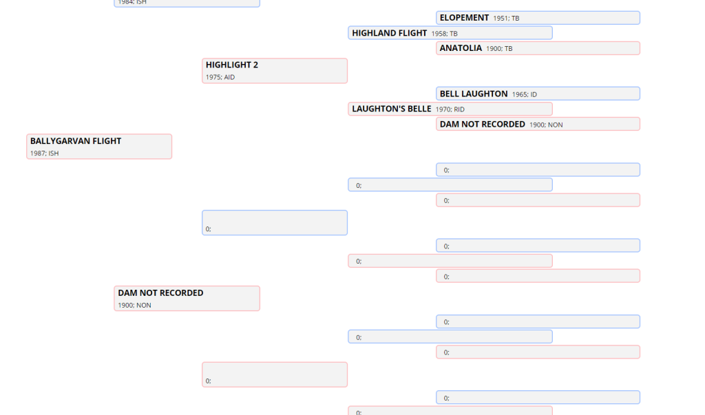 Ok, moving on to the bane of my existence: the Irish horses. OMfreakinG y’all, you’ve never seen such incomplete information in your life until you’ve gone searching for Irish horse pedigrees. The truth is that a lot of these horses, especially 20+ years ago, were bred by farmers who just did not prioritize putting information down when they sent in their registration paperwork. Because of that, there are huge gaps in just about every Irish pedigree, especially if it’s traditional ID/ISH vs Continental breeding. Not only is this frustrating for the sake of lineage, it also makes it really hard to get accurate blood percentages. Drives me batty.