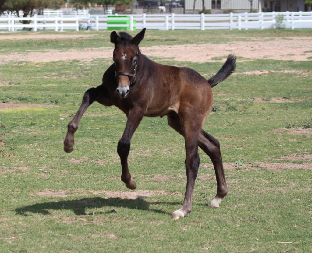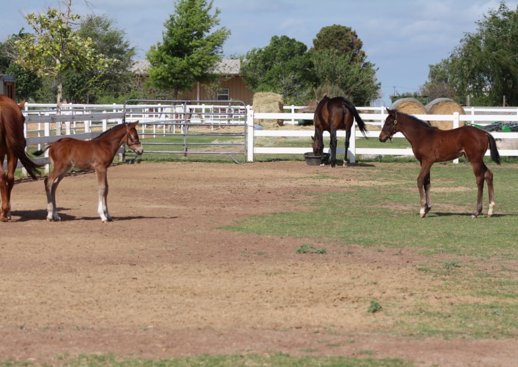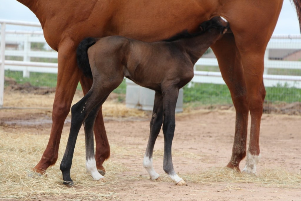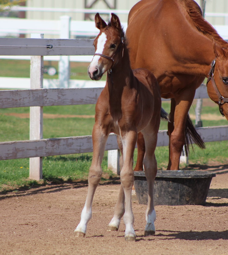 It will probably take him a few weeks to catch up to what would be “normal” looking for a newborn, but other than that he’s doing well. His lax limbs are already starting to tighten up and straighten, and he’s put on some weight. He’s getting a little bit of “PT” and has to stay on a more restricted turnout schedule for while until his legs get a bit stronger. He’s plenty spunky though, and makes good use of the space he has. He’ll be segregated from the other foals for a little while until he’s filled out more, but knock on wood so far he appears to be no worse for wear. Heck of a birth story though, and probably took a few years off Michelle’s life! This is the really scary part about breeding that always freaks me out a bit. It’s terrifying when things go sideways.