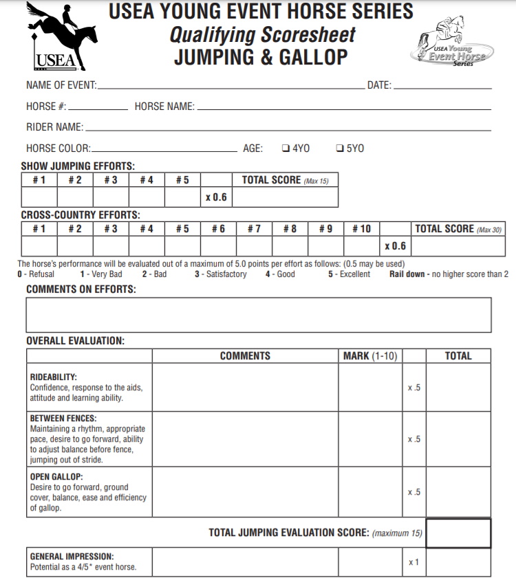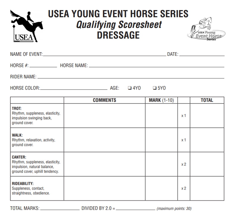 Also something that a lot of people don’t realize is that the dressage test isn’t REALLY a dressage test. Not as we know it anyway – the scoring is completely different. Take a look at the scoresheet.