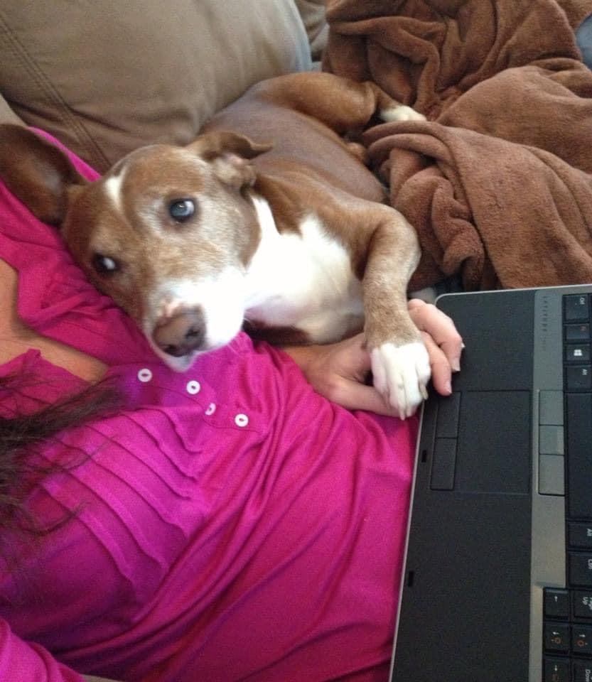 I have to admit, that first day I wasn’t quite sure if I’d made the right choice to get another dog so soon. My heart still hurt so badly from losing Stewie, and I questioned whether or not I was even capable of loving another one. I think Mina could tell, because every time I was crying she’d snuggle up next to me and just sit quietly. Again, like recognizes like. Other times she would come up and smash her body into mine as close as she could possibly get and just sit there, like she needed to feel loved and safe. She was mourning too, I think. I found myself wondering who her former people were, what her life was like, and what their story was. If only dogs could talk.